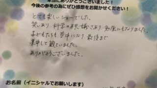 お客様の声 2025年11月27日サイエンスショー