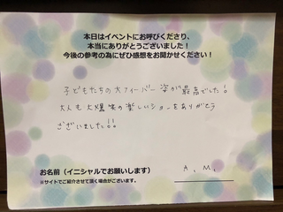 お客様の声子どももたちの大フィーバー姿が最高でした!