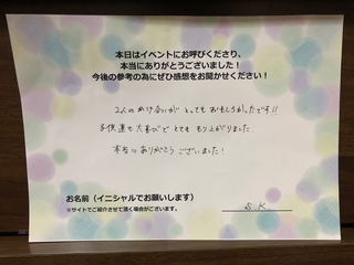 お客様の声2人のかけあいがとってもおもしろかったです!!