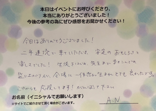 2年連続で来ていただき、安定のおもしろさと楽しさでした!
