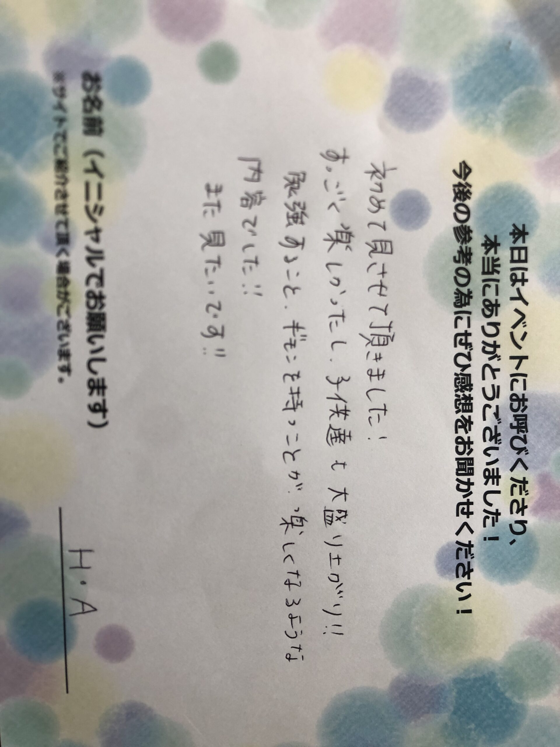 お客様の声初めて見させていただきました!!すっごく楽しかったし、子供たちも大盛り上がり!! 勉強すること、疑問を持つことが楽しくなるような内容でした!! また見たいです!! H.A