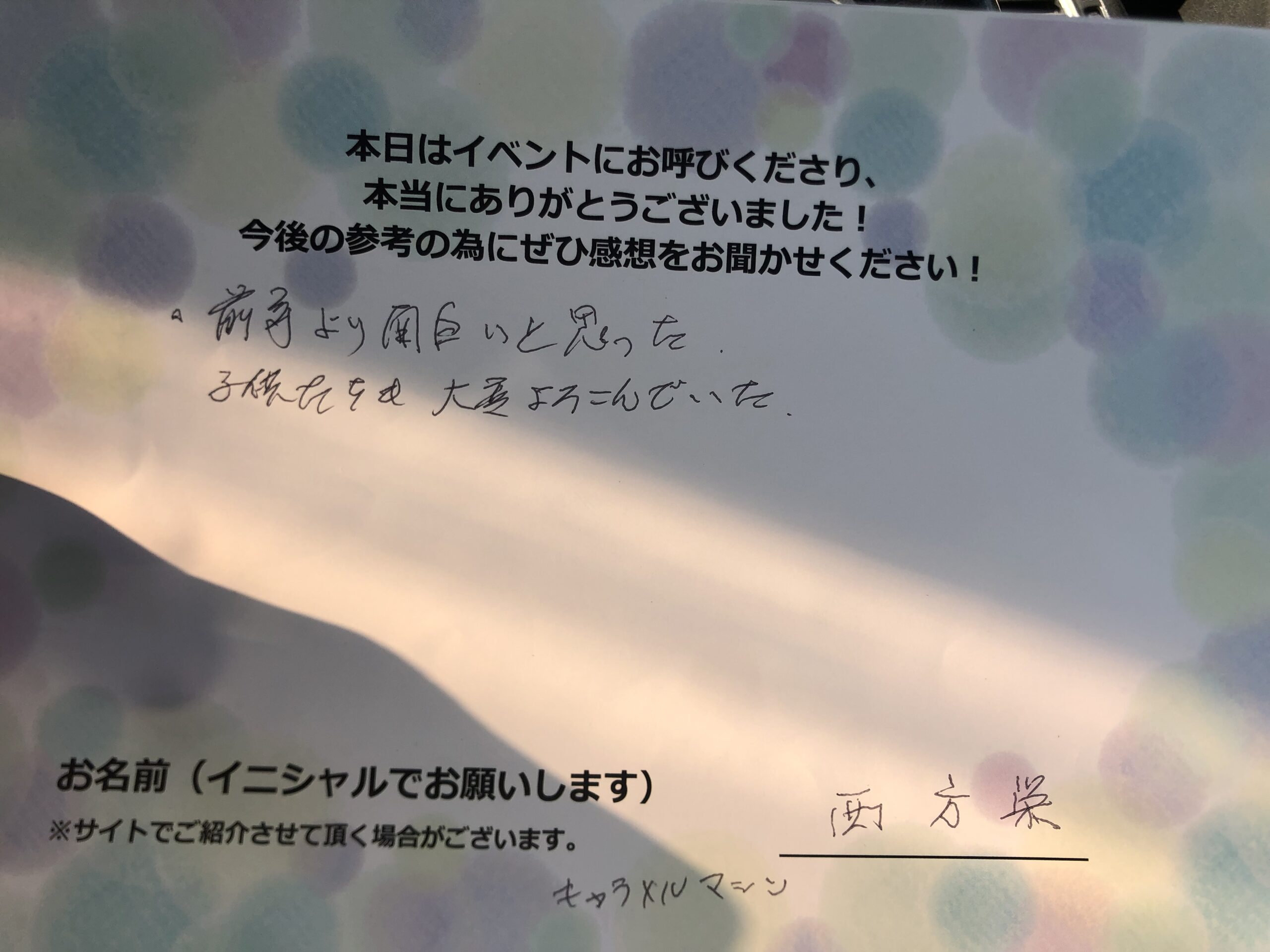 前年より面白いと思った。子供たちも大変喜んでいた。  西