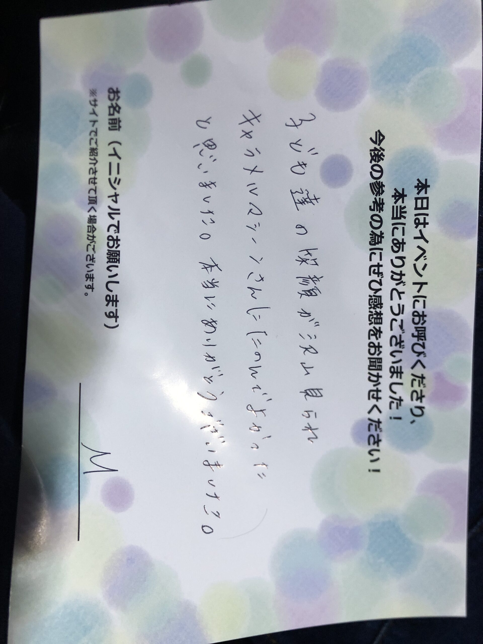 子供たちの笑顔がたくさん見られ、キャラメルマシーンさんに頼んでよかったと思いました。本当にありがとうございました。 M