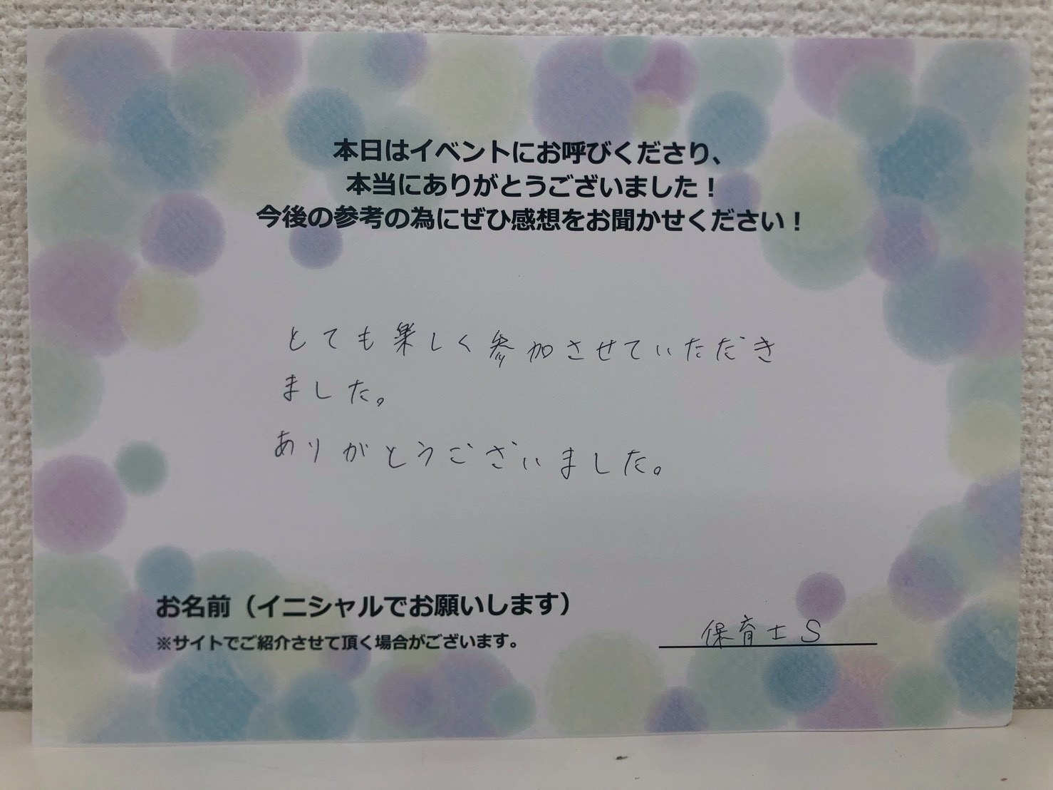 お客様の声とても楽しく参加させていただきました。ありがとうございました。